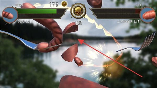 战斗时,操控像“热狗”这类的香肠,手持叉子武器,对准箭头所指的对手,攻击其身体碎片,力求以零败绩击败敌人。