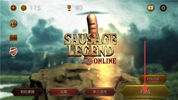 在主界面找到并点击【对战】按钮,就能选择好友对战等不同模式,系统会为你匹配对手,开启香肠之间精彩刺激的格斗对决。