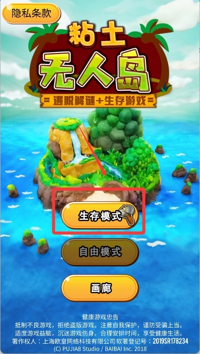 进入游戏后点击屏幕中间生存模式开始游戏。