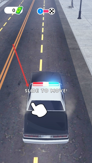 滑动控车:按下“SLIDE TO MOVE”按钮,通过滑动屏幕来操控警车在公路上行驶,并规划行驶路线。