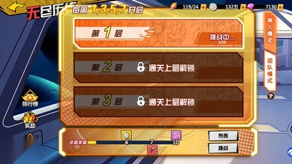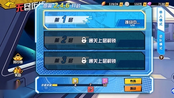 无尽历练包含单人模式与团队模式两种玩法,其中单人模式于每周二、四、六开放,团队模式则在每周一、三、五、日开启。