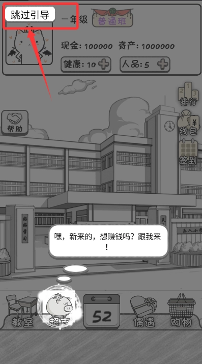 进入游戏后,你可以选择跳过引导剧情,直接开启你的校园创业之旅。