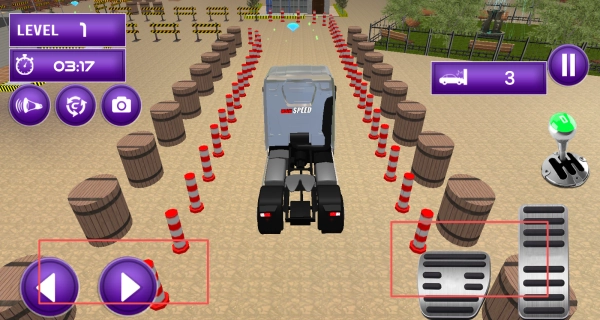 3、驾驶过程中,主要借助左侧的左右方向键来操控转向,同时搭配右侧的油门键和刹车键,以此控制车辆的行驶速度以及实现停车操作。
