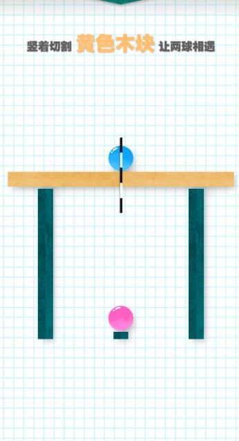 竖着切割黄色木块让两球相遇。