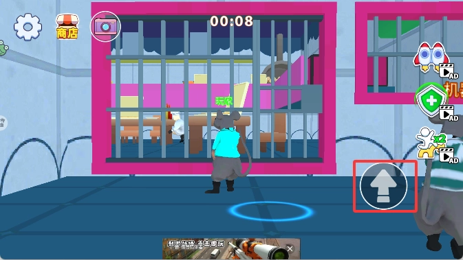 右下角按钮控制鼠鼠跳跃,跨越障碍。