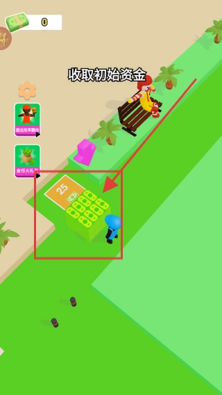 在游戏的初始场景里,按照提示领取初始资金,获取这笔启动资金,以便为经营快餐店做好准备。