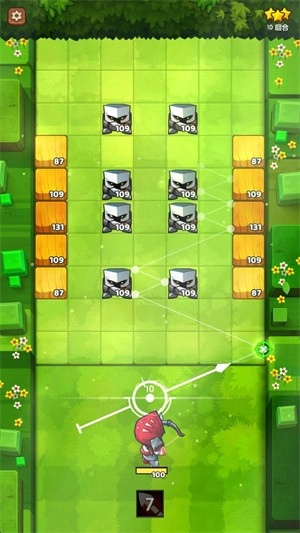 3、进入关卡后,按住屏幕即可选择不同角度发射弹球攻击敌人,弹球命中敌人时会对其造成伤害。