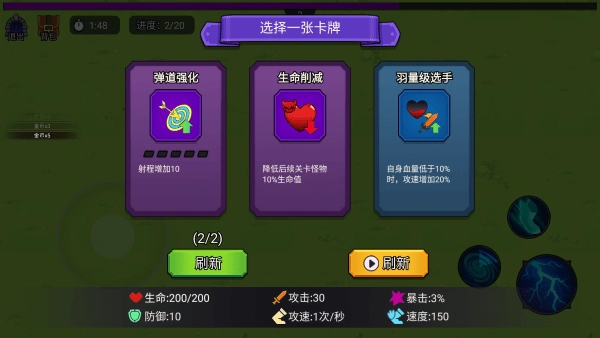 击杀敌人有经验掉落,升级后可以选择天赋技能。