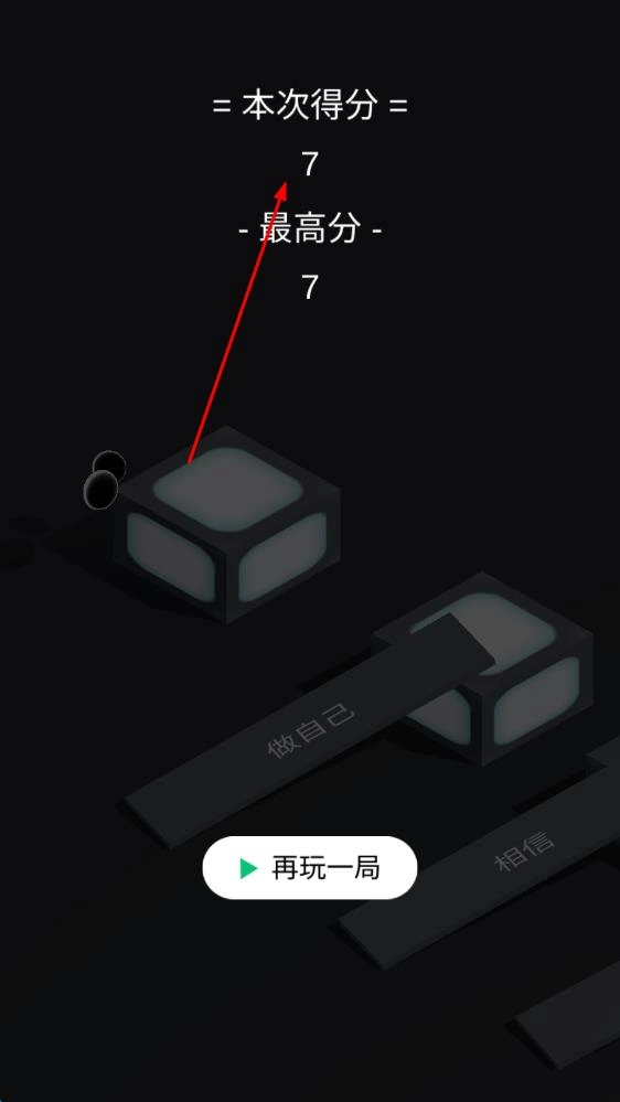 游戏进行到中途,随着不断前进,方块之间的间距或许会发生改变,这时得仔细地预估距离,同时聆听音乐的节奏来辅助把控按压力度,还要调整好心理状态,避免产生急躁情绪,持续向上跳跃从而获取更高的分数。