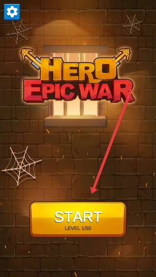 打开Hero-Epic-War游戏,在游戏主界面点击START按钮,进入Level-1/50关卡,开启冒险战斗之旅。
