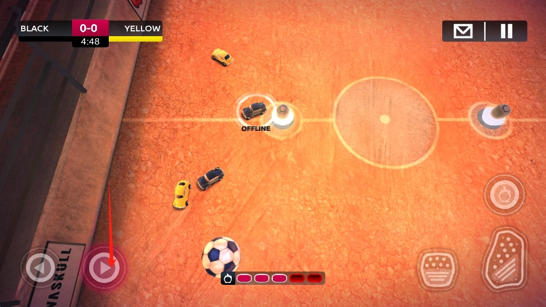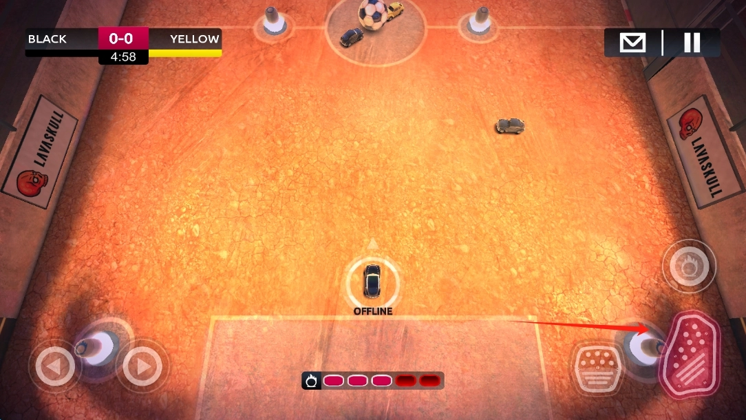 游戏过程中,要熟练掌握右侧按钮的操作,精准把控汽车的行驶方向,在赛场中灵活变换位置,全力争夺足球的控制权。