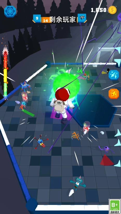 动态体型变化系统,视觉反馈直观又有趣。每局都会随机生成道具,战局时刻瞬息万变。还支持多人实时对战,和好友开黑乐趣直接翻倍。