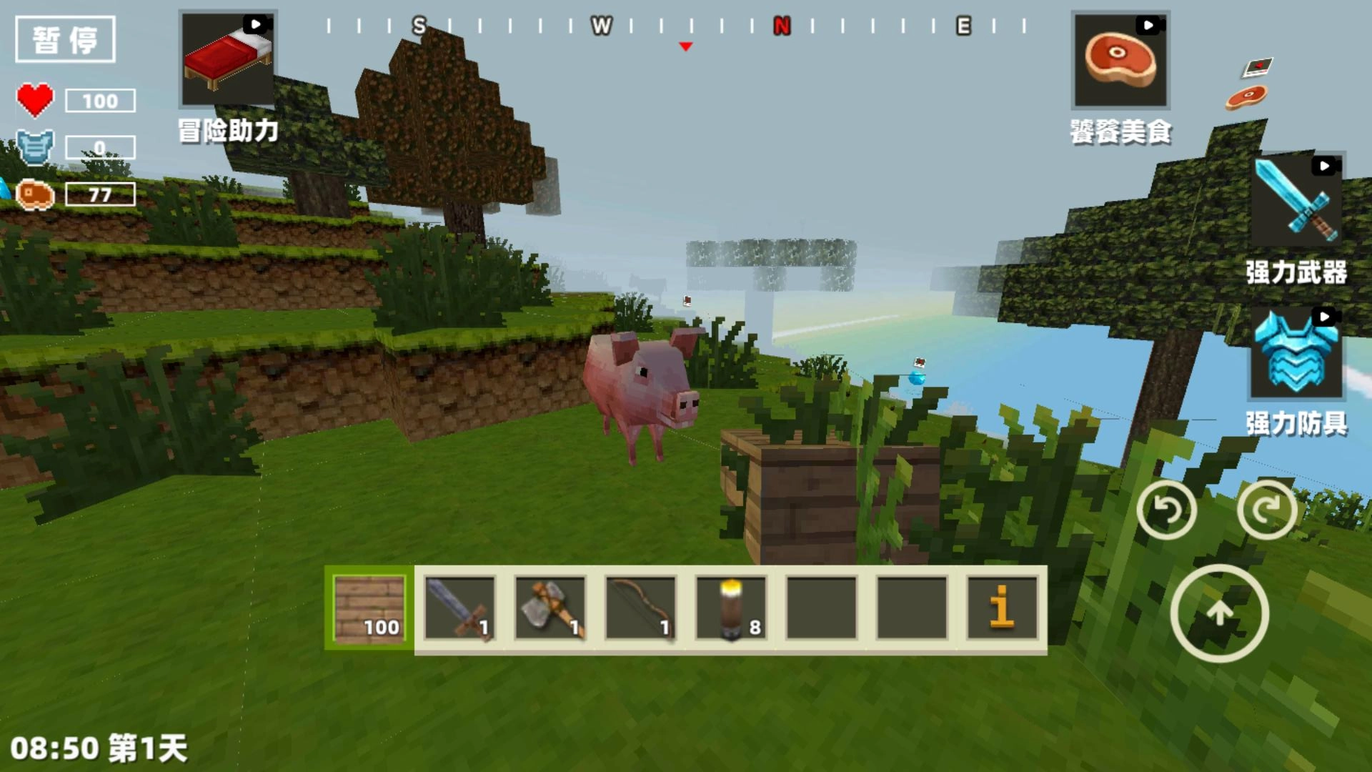 3、加入了生存玩法元素,你得收集木头、石头这类资源去制作工具,还得应对夜晚降临后出现的各种危险。