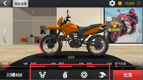 进入游戏后,挑选心仪的摩托车开启竞速挑战,借此熟悉车辆的操控方式与赛道的布局特点。通过反复练习过弯技巧和把控加速时机,不断提升比赛成绩,从而解锁更多不同类型的车型。