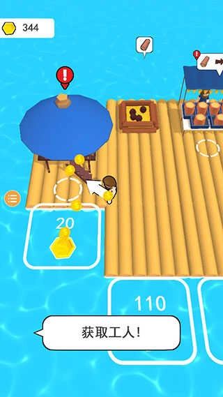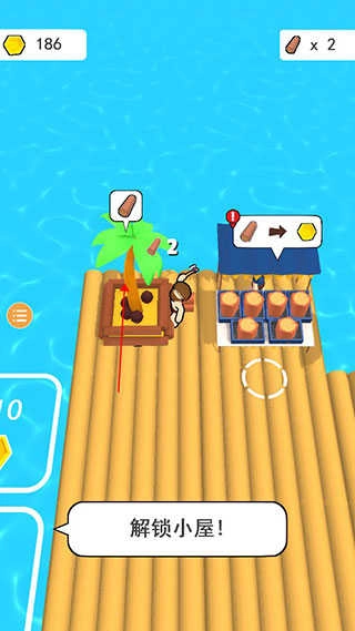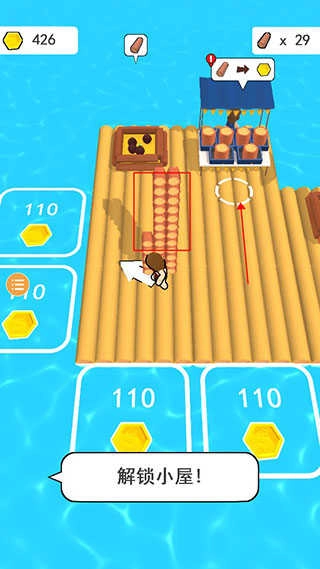 卖掉木头赚得大笔金币后,走到木筏边上,用这些金币来拓展自己的地盘。