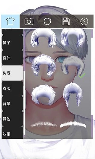 头发选项,不同帅气的发型可以选择。