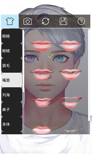 嘴唇选项,可以选择不同样式。