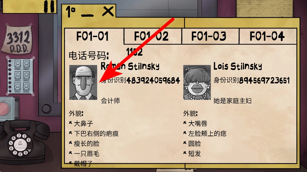 当人物出现在屏幕里时,要认真留意其外形样貌,和信息表上的内容做比对,判断是否契合普通人员的特点,借此来识别身份,推动游戏推理的进展。