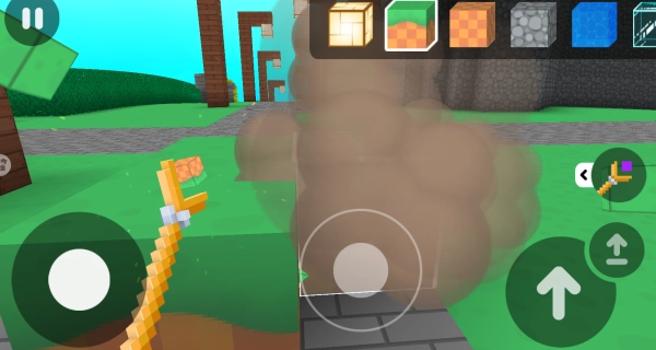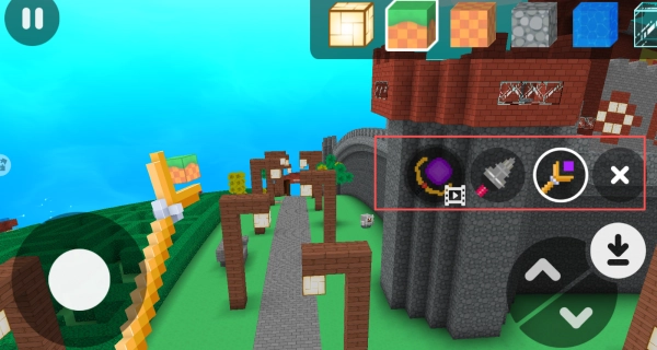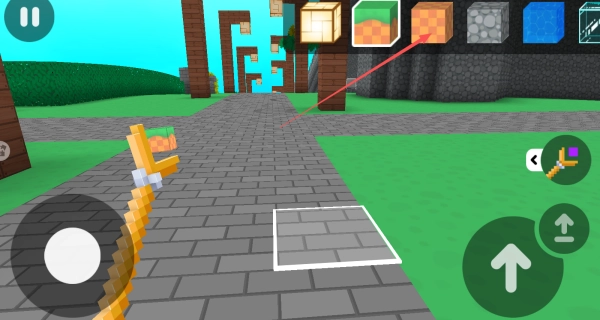 在工具栏上方的区域,你能够挑选石头、木头、玻璃之类各式各样的方块,以此来建造出你所期望的建筑。