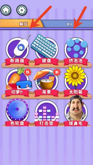 打开游戏就能自由挑选玩法!想安静时可以弹钢琴、敲架子鼓,想发泄时就捏泡泡、砸西瓜。