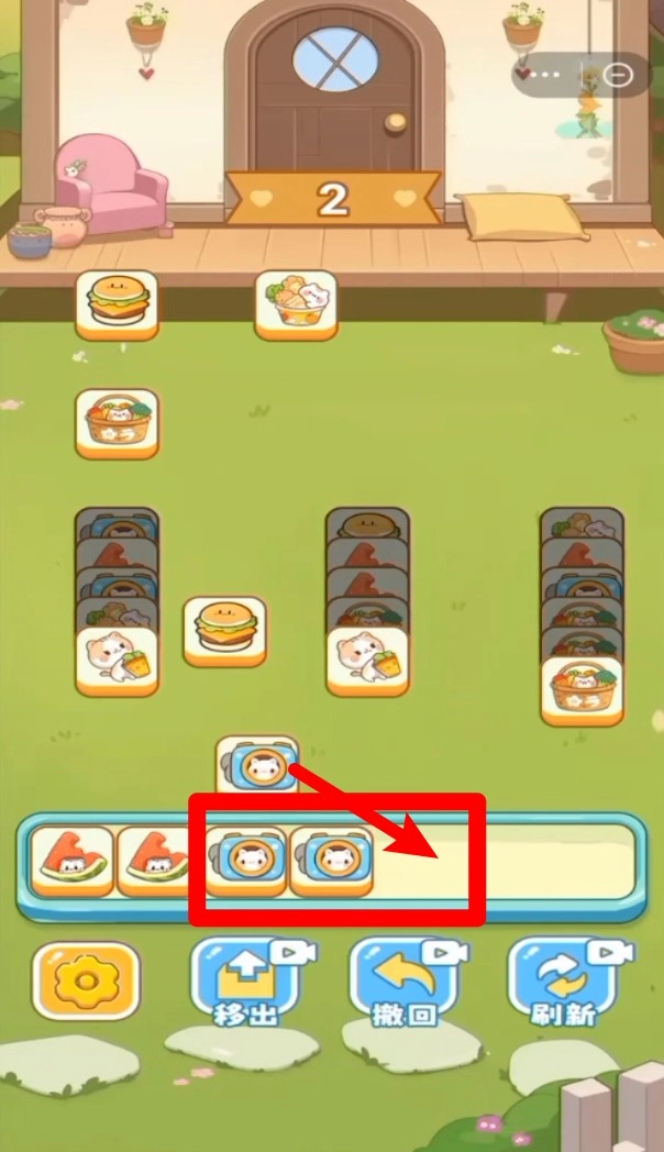 2. 下方的收纳槽可以放置翻出来的牌,只要凑够三张相同的就能消除,不过收纳空间是有限的,得合理规划放牌的顺序,防止出现卡槽卡住的情况。