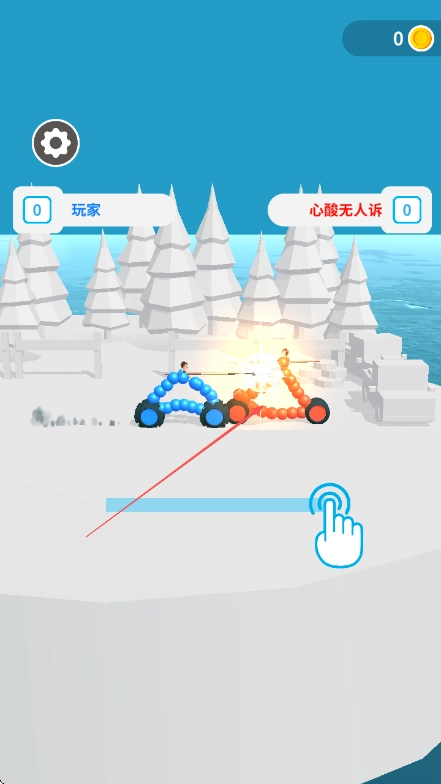 对战时通过点击屏幕进行操作,操控自己绘制的飞车攻击对手的飞车,以争取对战优势。
