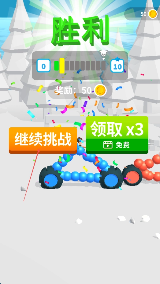 成功战胜对手后,要是出现了胜利提示,你可以点击领取奖励,接着再点击继续挑战就能开启新的对战了。