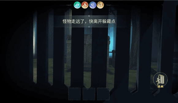 当怪物即将靠近时,要立刻躲进躲藏点;成功避开怪物后,找到传送门就能获得胜利。
