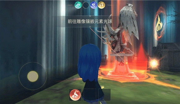 在地图里找到元素雕像,把得到的元素球镶嵌到雕像上,就能开启传送门了。