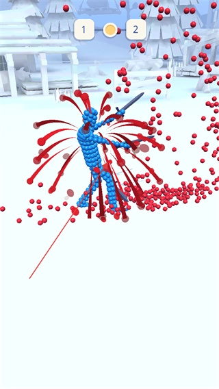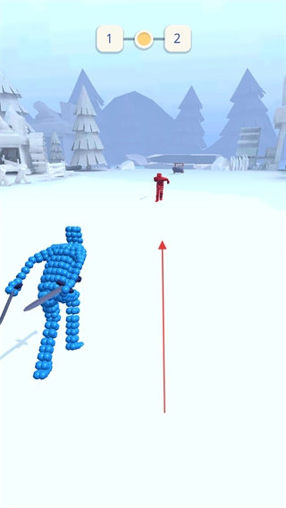 调整好姿势后,点击进攻按钮,操控蓝色火柴人向红色敌人前进并发动攻击。