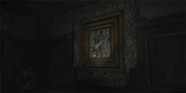 从另一侧的门出去,沿着一条长廊走到尽头,右侧的一幅画突然掉落,并且紧紧靠在了左边的墙上。