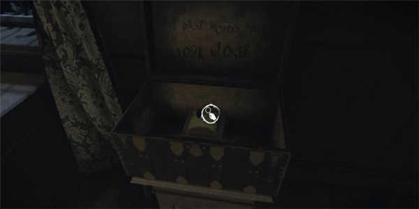 接下来前往蜡烛正对面的宝箱,在锁头上输入密码,就能打开宝箱,得到第一件怨念物(1)——蓝宝石戒指。