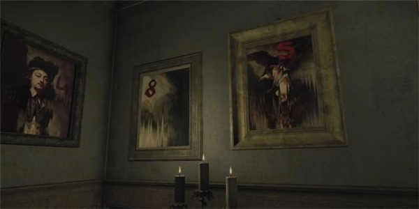 在蜡烛上方那三幅尺寸不大的油画上,会从左到右依次显示出“4、8、5”的字样(需要注意的是,不同的存档对应的密码并不完全相同)。