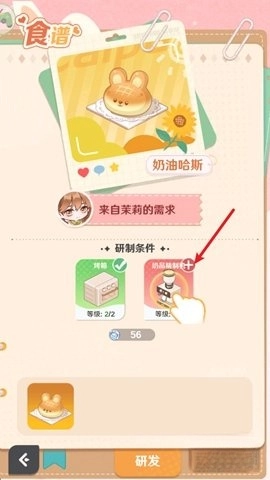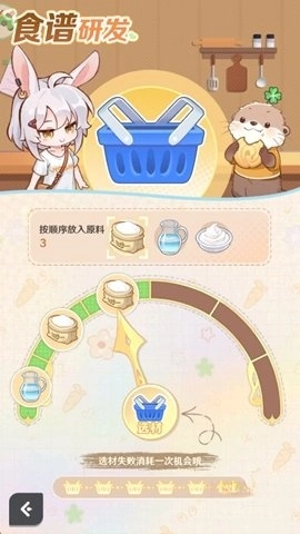 3、添加设施后,即可开始研发,按照顺序选择对应的食材。