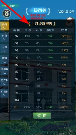 医院设有多个不同的科室,各个科室都会负责接诊患者。通过经营报表,我们可以看到各科室的接诊量、治愈情况等信息,以及这些科室所带来的收益。因此,需要关注这些数据,以便更好地了解科室的运营状况。