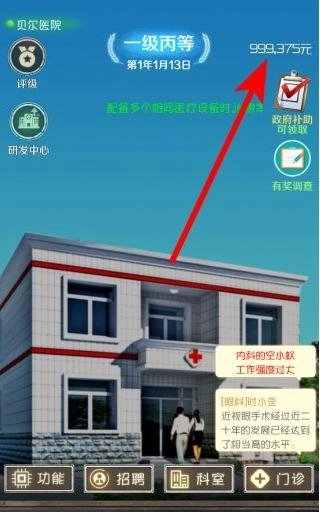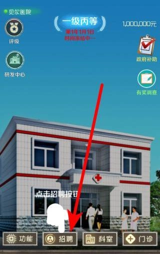 可以点击招聘按钮来招募优秀的医护人员,这些人员能够充实医院的人力资源,为后续接诊患者等工作提供人员保障。