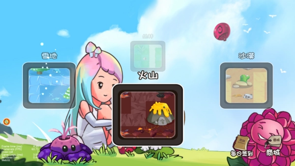 可以挑战的主题关卡有四个,分别是偶火山、沙漠、丛林和雪地。
