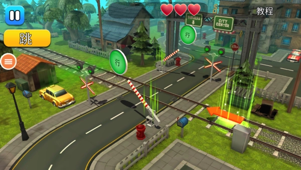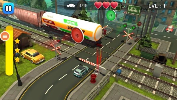精准时机操作:当火车即将进入交叉路口时,玩家要快速放下拦路牌,强制阻挡直行车辆,保障火车优先通行。