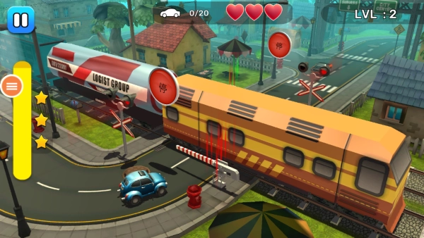 《画桥车神》是一款围绕铁路运输设计的益智闯关游戏。每当火车驶近时,玩家得及时放下拦路牌,让打算直行通过路口的汽车停下,等火车先过。只有反应足够快,才能让这个汽车与火车交汇的路口通行更顺畅。