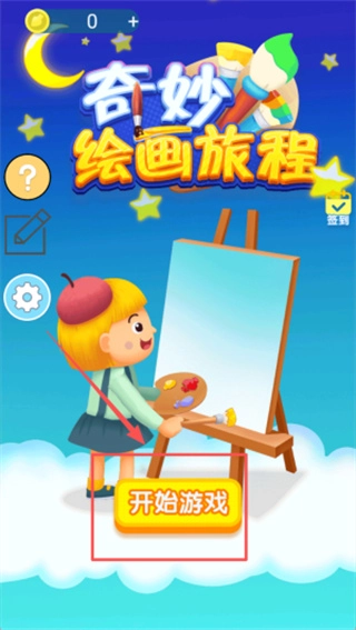 进入游戏主界面后,当看到戴着红色帽子的小女孩时,点击她面前那个黄色的“开始游戏”按钮,就能进入绘画模式了。