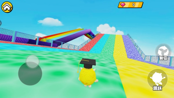 滑动虚拟摇杆,控制角色前行,朝着终点奔跑。