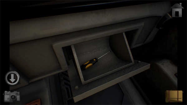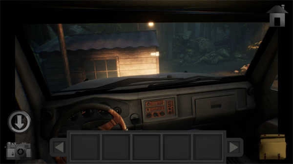 出门后留意到保险丝盒出现损坏,而且位置太高够不着。于是折回左边的路走向海滩,登上船找到了车钥匙,打开车灯来照亮前面的小屋。