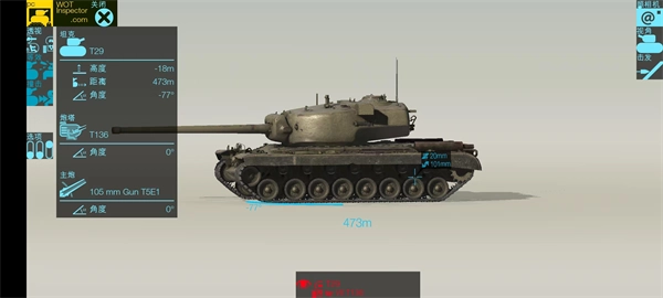 3、而点击透视、等效、撞击、视角,则可以对坦克调整位置,观看具体的数值;