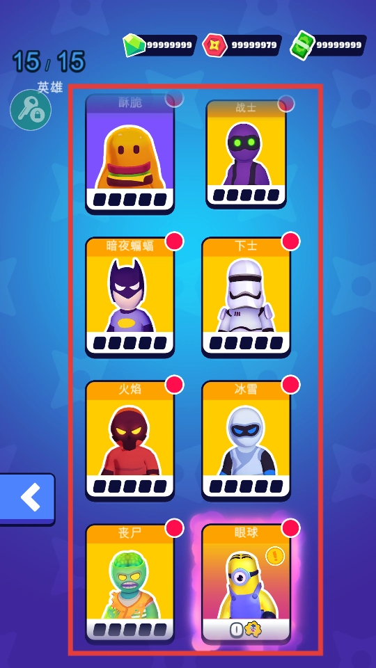 2、挑选红框里已经解锁的【酥脆】【战士】【暗夜蝙蝠】这类英雄皮肤,更换角色外观之后,就可以开始游玩了。