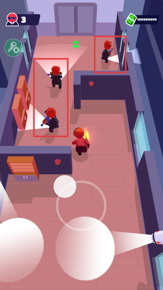 3、进入游戏后,操控角色避开摄像头以防被察觉,接着把红框里的敌人都清除掉。