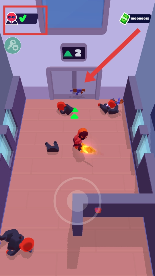 4、把所有敌人都消灭干净后,就移动到箭头指示的【电梯】那里,这样就能开启新任务了。