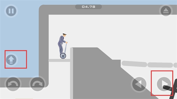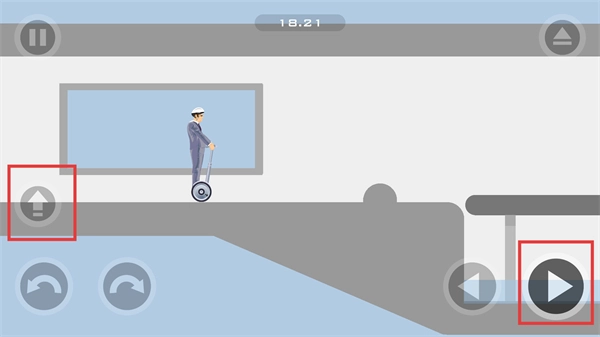 2、当遇到平台缺口时,需按下【向上按钮】与【向右按钮】,使角色向上跳跃移动,以此跨越缺口并保持平衡车的稳定。