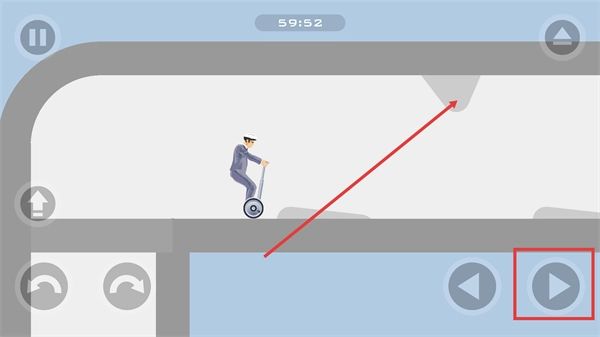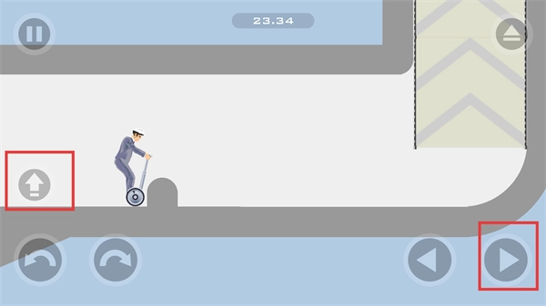 3、遇到弧形路径时,需持续点击【向右按钮】与【向上按钮】,引导角色沿着曲线移动,在此过程中要注意保持平衡,防止平衡车侧翻而耽误进度。