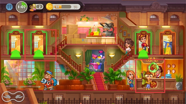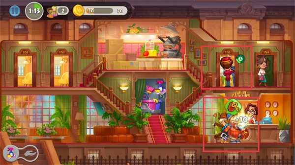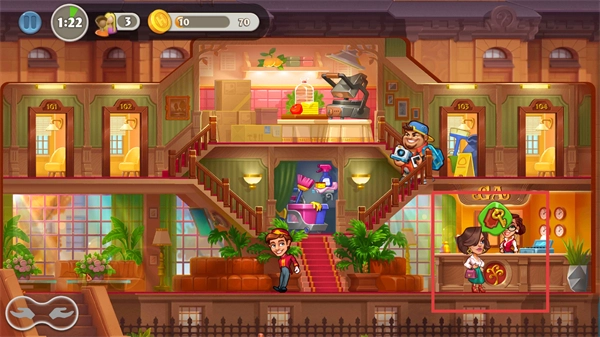 3、优先处理带有绿色计时器标识的订单,以此获取更多金币,这些金币可用于积累资金,进而支持酒店的升级与扩张。