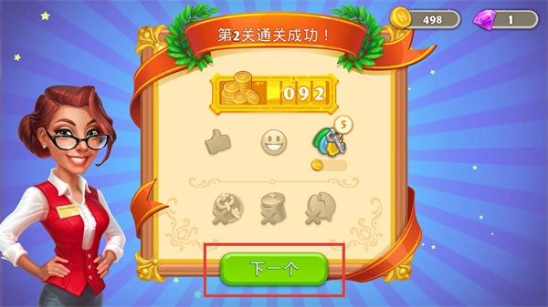 4、通关之后,点击界面上的【下一个】按钮,就能进入下一关继续进行挑战。